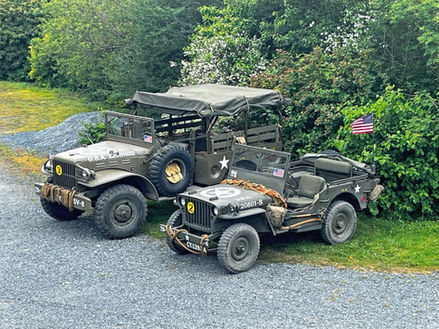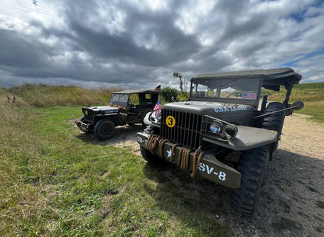 JEEP N DODGE EXPERIENCE offers you to live a unique experience during a ride aboard our historic Normandy landing vehicles. Let yourself be transported in the footsteps of the allies in the heart of small bocage paths, Norman villages or along the famous beaches of Omaha Beach and Gold Beach. The characteristic noise and smell of the vehicles will surely take you back in time.